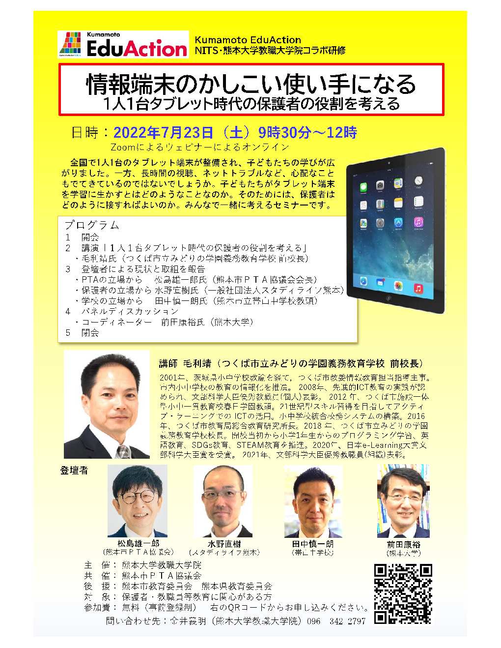 オンラインセミナー「情報端末のかしこい使い手になる~1人1台タブレット時代の保護者の役割を考える~」開催のお知らせ
