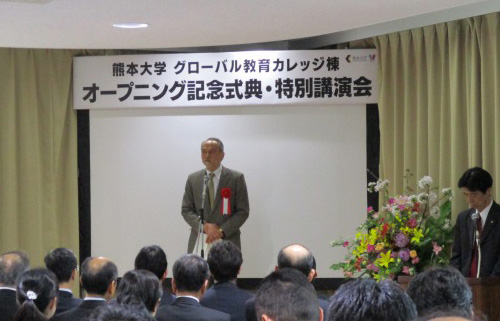これは、熊本大学が平成26年度に採択された、文部科学省「スーパーグローバル大学創成支援」事業の採択を受け、熊本大学のグローバル教育推進のシンボル施設として整備した「グローバル教育カレッジ棟」が完成し、新学期からいよいよ運用を開始することから、お披露目を兼ねて開催したものです。