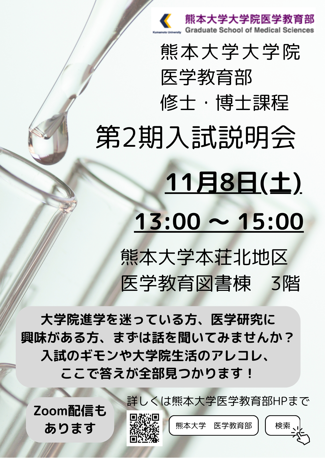 熊本大学大学院医学教育部の入試説明会を開催します。