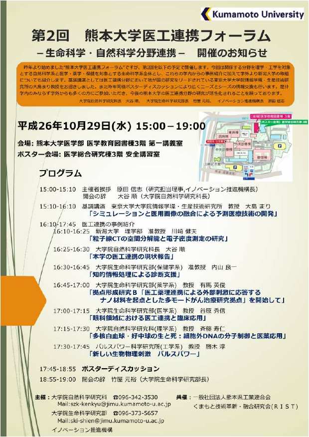 第2回熊本大学医工連携フォーラム-生命科学?自然科学分野連携-を開催します