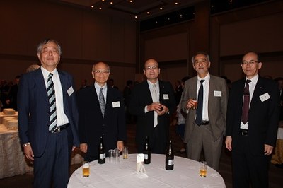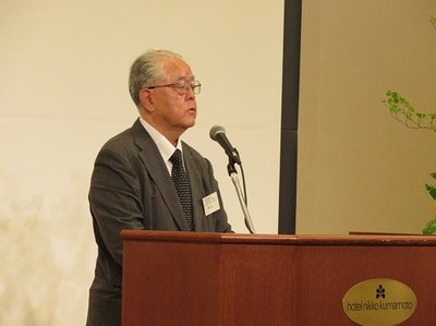 | 講演会終了後に開催された交流会では、まず古島幹雄熊本大学理事(副学長、昭和51年理学部卒)、本島昭男関西連合同窓会会長(関西武夫原会会長、昭和43年法文学部卒)からの挨拶があり、祝辞が述べられました。 | |
