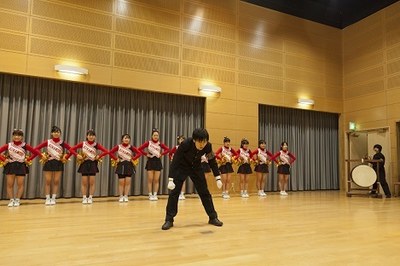 パーティでは、原田学長からの大学の近況報告、今年度の卒業生表彰受賞者の紹介の後、久しぶりの再会を楽しんでいただきながら、現役学生の活動紹介として、書道部(パフォーマンス書道)、マンドリンクラブ、古武道部、アカペラ(Higo-Pella)、チアリーディング部の演技、演奏等をご覧いただき、最後には、応援団による演舞の後、恒例の旧制第五高等学校寮歌「武夫原頭に草萌えて」を全員で大合唱して締めくくり、再会を約束し盛会のうちに閉宴となりました。